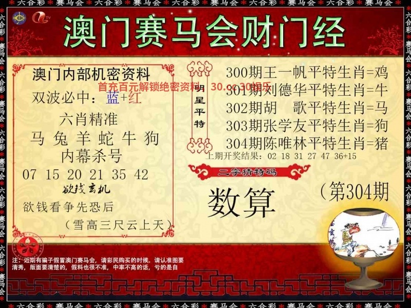 | 308期五肖 | 虎鼠龙马鸡 | 开:發00 |