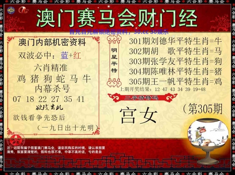 | 301期四肖 | 猪鼠马牛 | 开:牛05 |