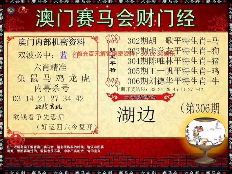 | 308期二肖 | 虎鼠 | 开:發00 |